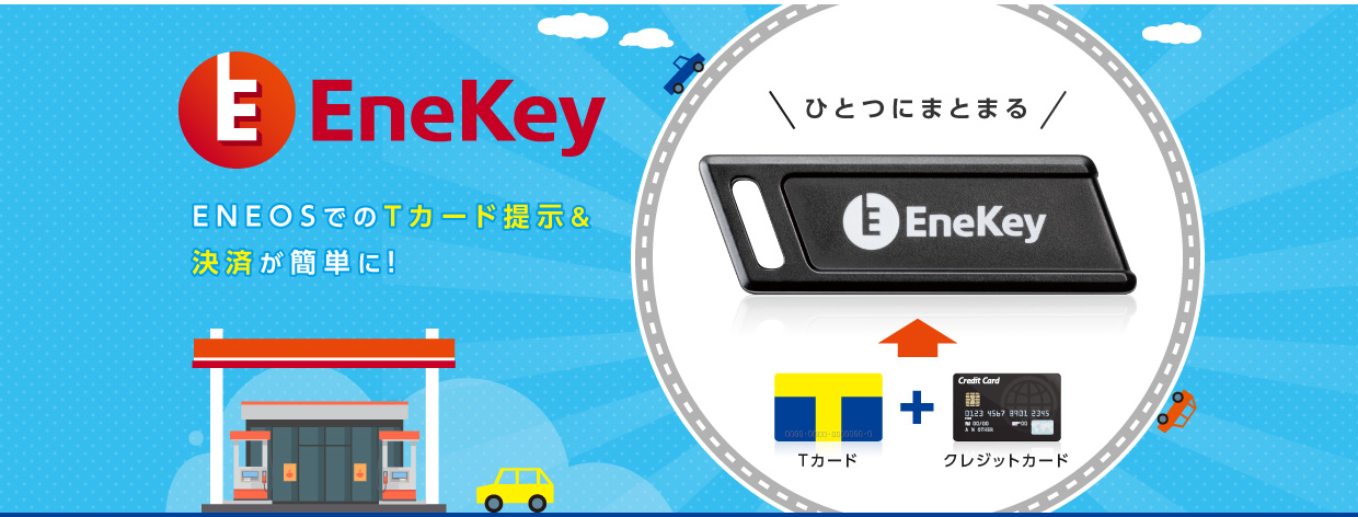 また、Tポイント・ジャパンは、JXTGエネルギーとともにENEOSのセルフサービスステーションで利用できるキーホルダー型の非接触決済ツール「EneKey(エネキー)」※とTポイントサービスとの機能連携を行い、7月1日より、「EneKey」でTポイントが貯まって使えるサービスを開始いたします。