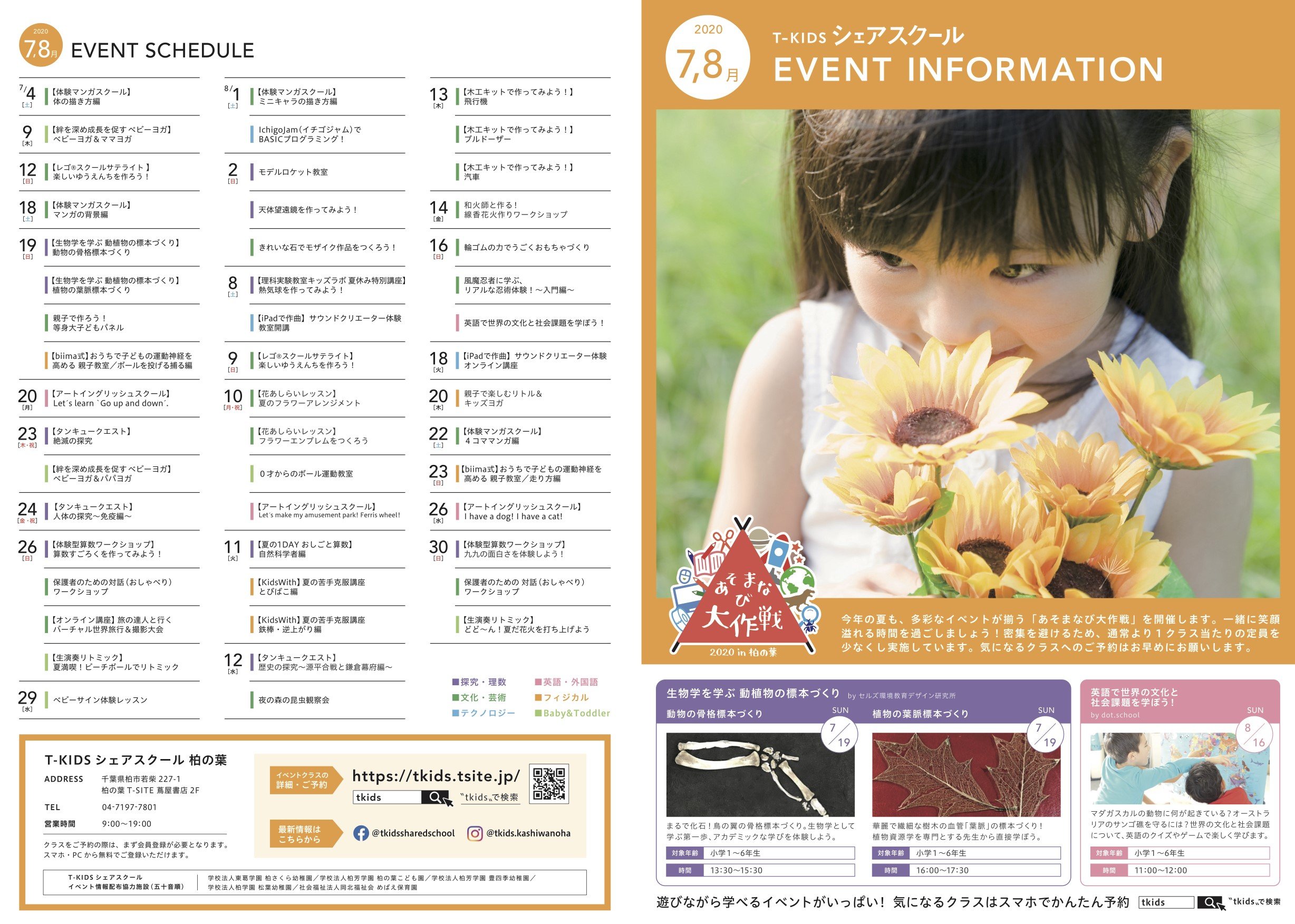 T-KIDSシェアスクール柏の葉 夏イベントの予約受付を開始! 全70種類のイベントリストを公開