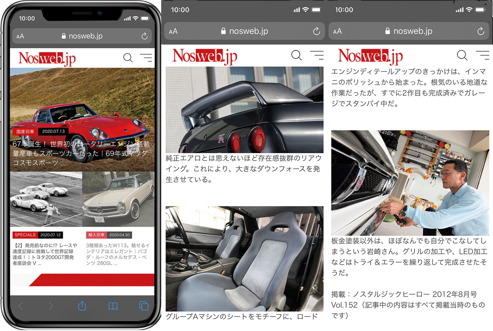 1986 年に創刊し、30 年以上、クラシックカー業界を牽引してきた、『NostalgicHero』誌、1980年代以降のネオクラシック/ヤングタイマー車を専門とする『ハチマルヒーロー』誌、それらの時代のクルマをより個性的に楽しむカスタマイズ&チューニング専門誌『NostalgicSPEED』の3 誌を母体としたクラシックカー総合Web マガジン。それが『Nosweb.jp(ノスウェブ・ドット・ジェイピー)』です。
