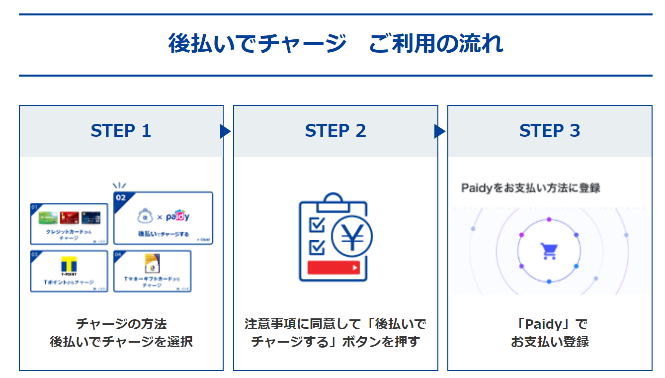 ※「後払いでチャージ」は3,000円以上、1,000円単位でチャージができます。