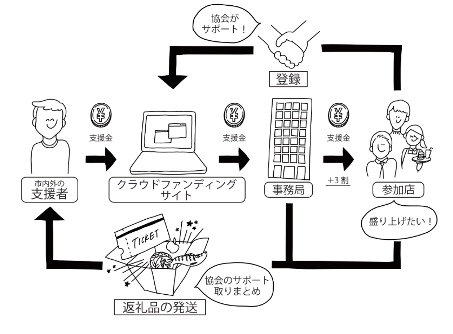 本プロジェクトは、多賀城市の事業者、特産品の魅力を広く発信することで、ファンの方々からの支援を受付け、その返礼として多賀城市による3割~5割の支援を上乗せした商品やサービスをお返しするものです。10月8日現在での参加事業者は76事業者で、ファンの方々は、GREEN FUNDINGの特設サイトから、支援したいお店を指定し、支援することが出来ます。