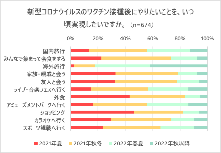 実際に実現するのは、「国内旅行」は2021年秋冬、「会食」は2021年秋冬、「海外旅行」は2022年秋以降