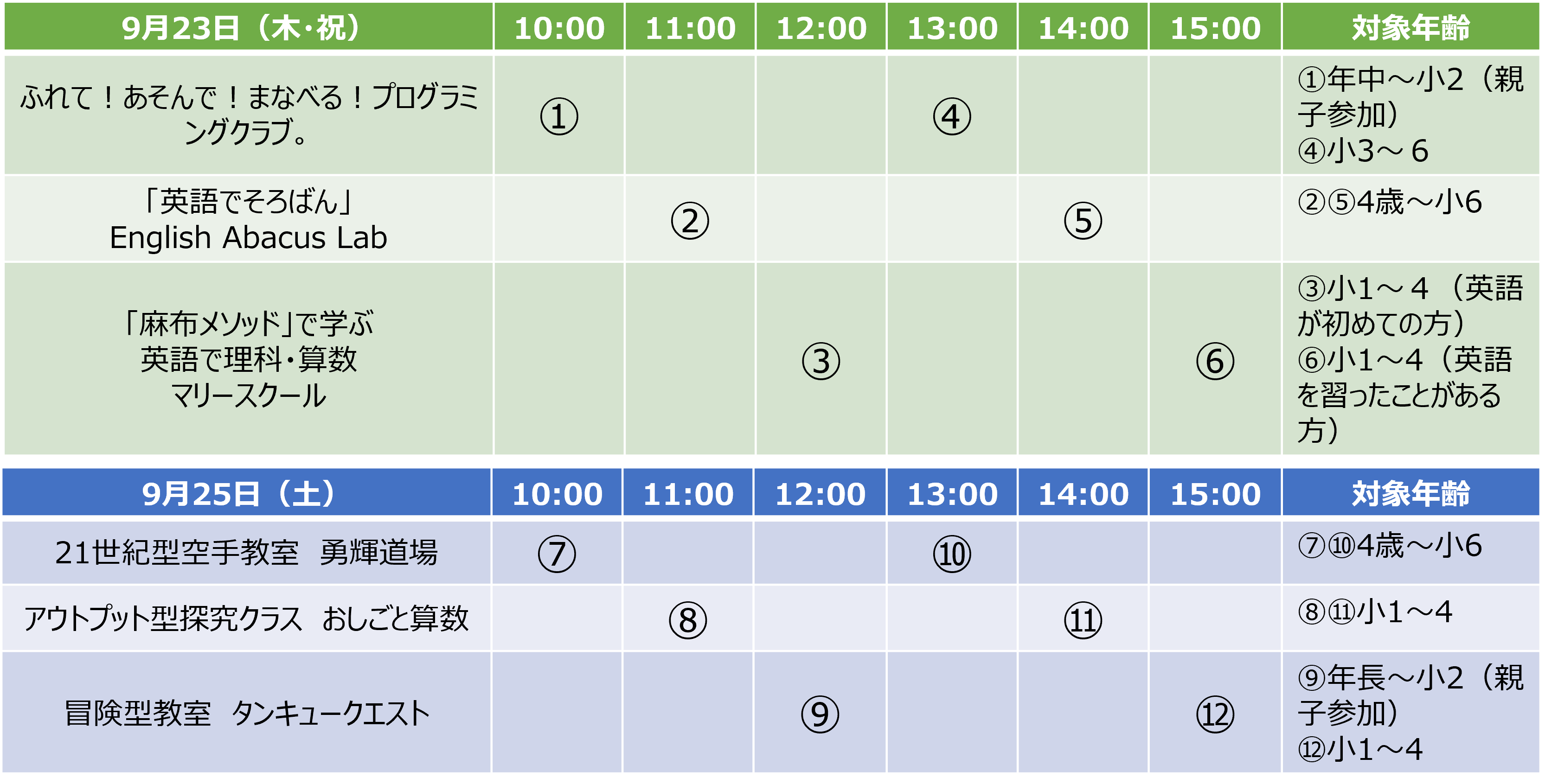 ■日程 : 9月23日(木・祝)、25日(土)