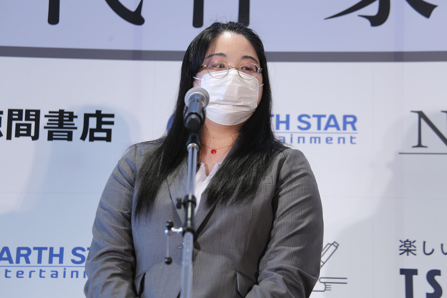 最初応募要項を見た際に、約800店舗のTSUTAYAで展開してもらえるなんて有難い賞だなと思いました。他の文芸賞と違う記入項目が多かったのですが、その中のひとつである「想定するターゲット層」に「『君の名は』のような不思議な要素が入った青春恋愛ものを好む層」と書きました。そして、まさか大賞をいただき、"瀧くん"が会場にいらっしゃるなんて、とても運命的なものを感じました。