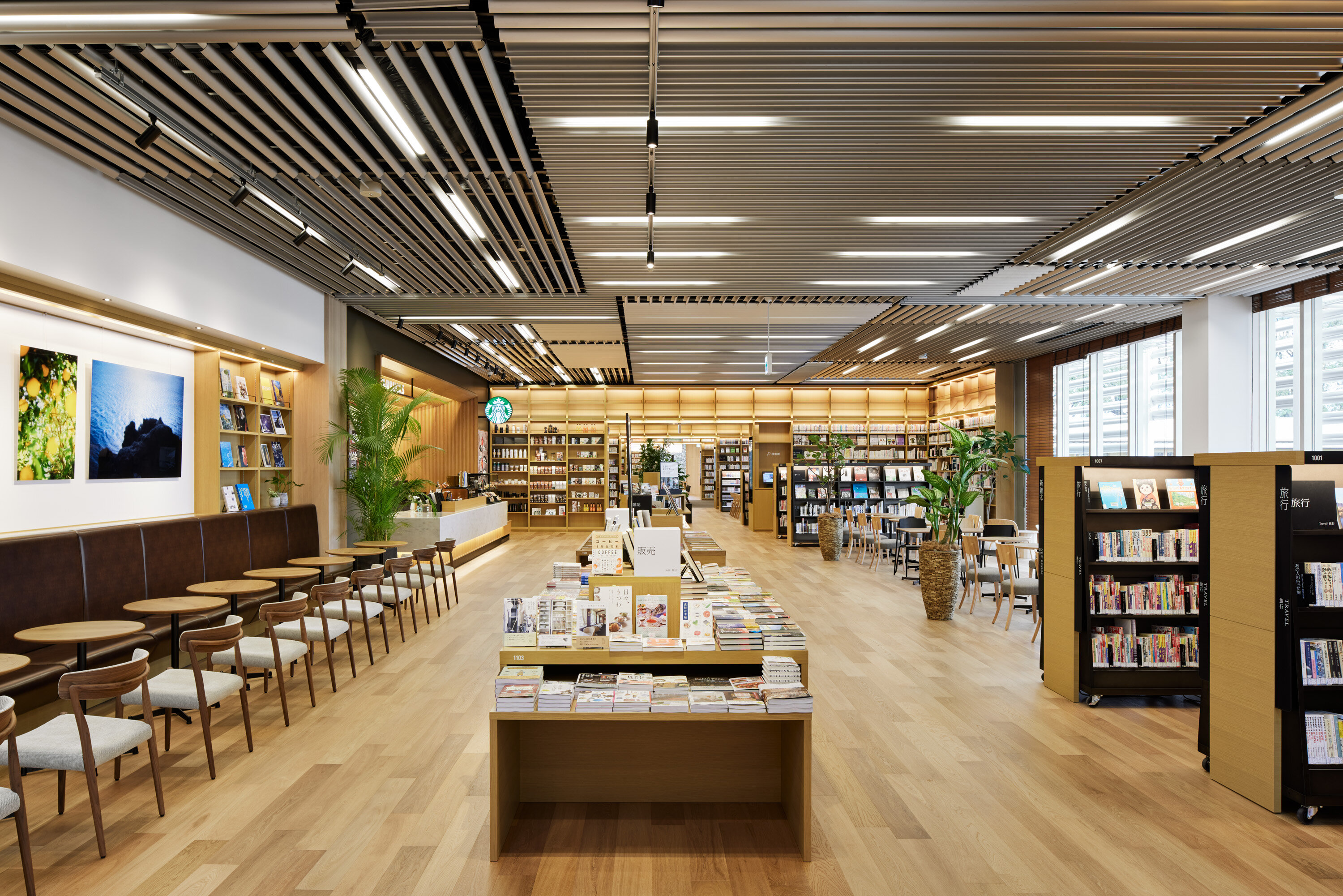 2) 入口を入るとスターバックスがあり、BOOK&CAFEスタイルで館内の座席では購入したコーヒーを飲みながら図書をお読みいただけます。![]()