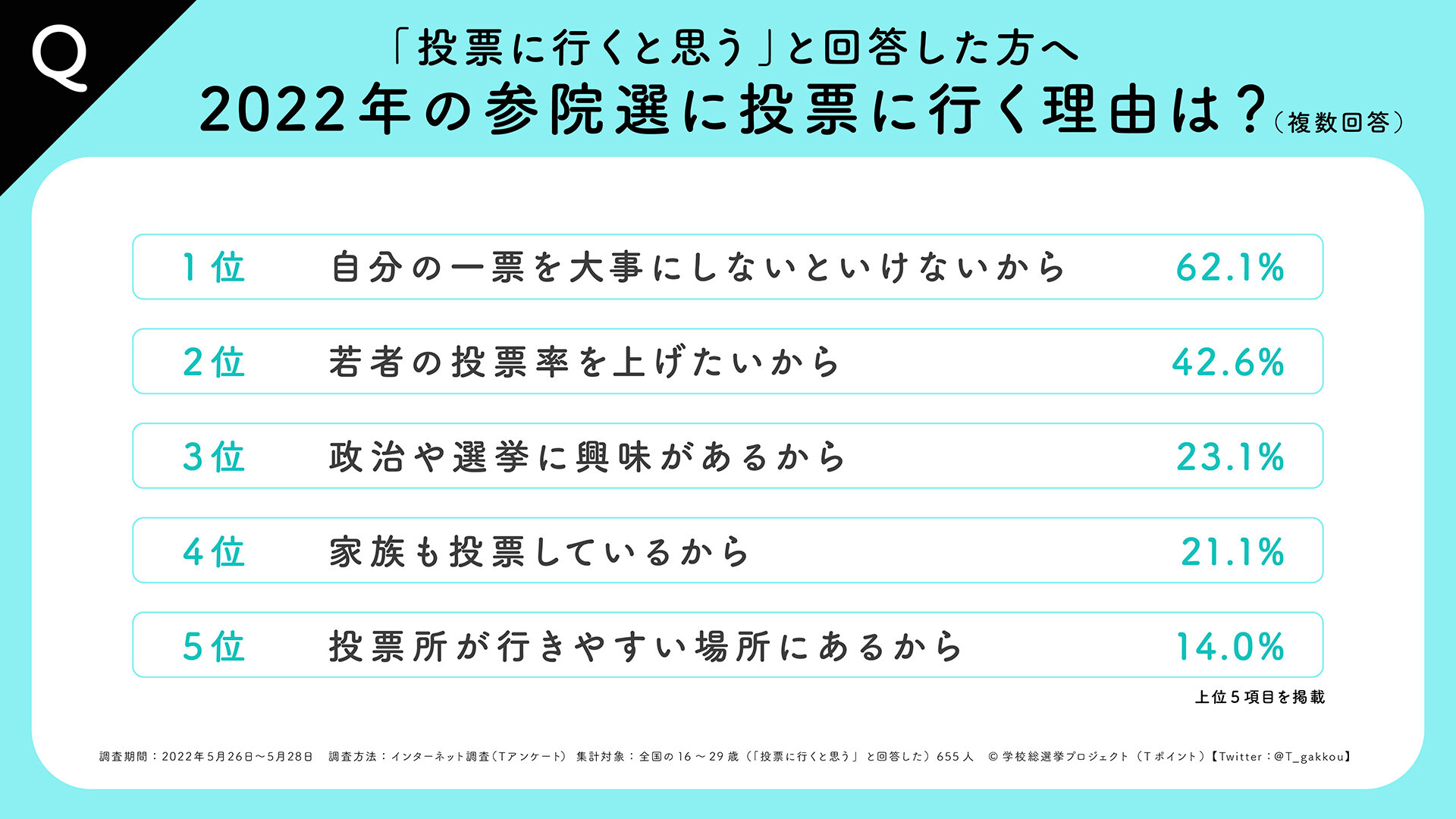 選挙に行く理由は「自分の一票を大事にしないといけないから」が最多