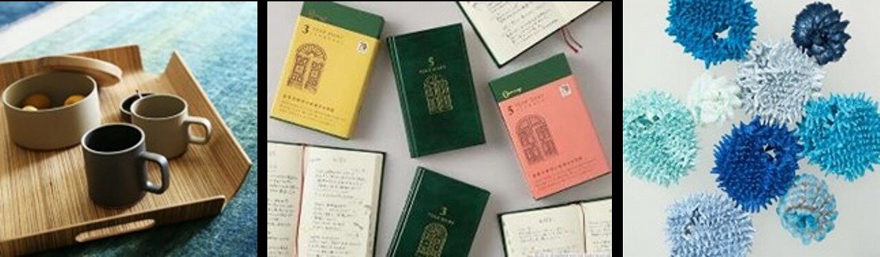 日本から輸入した文具雑貨を中心に、日常を豊かに彩るアイテムを取り揃えております。例えば、日本の波佐見焼を現代的にアレンジした食器「HASAMI PORCELAIN」(写真左)や、使うことが楽しくなる美しい文房具「MIDORI」の70周年記念シリーズ(写真中央)、100年以上続く京都の呉服店が手掛けたファッション小物「BUNZABURO」(写真右)など毎日の生活に加わることで日常が楽しく過ごせる商品をご提案いたします。