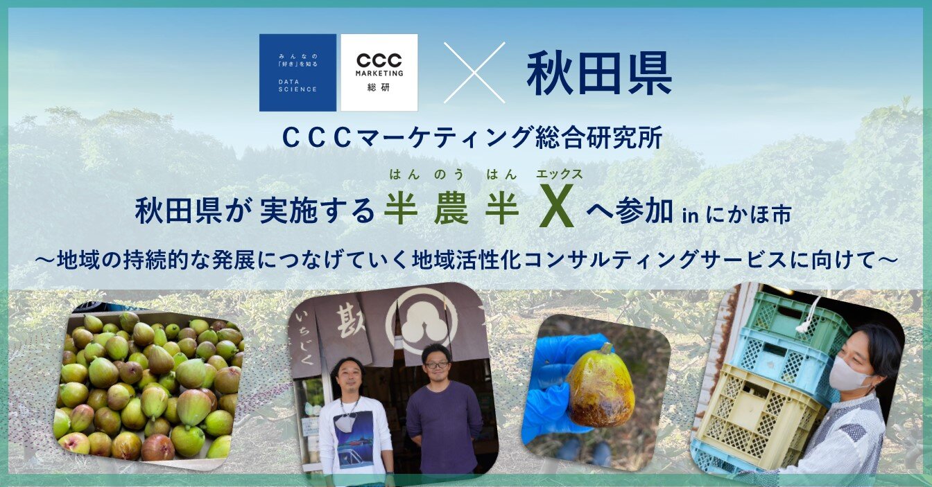 CCCマーケティング総研は、『暮らす人と共に歩み、共に考えるシンクタンク』として地域や生活者をひとつの「まち」として捉え、「まち」の未来づくりを「データ」×「クリエイティブ」×「コンサルティング」の力で進めていく地域活性化コンサルティングサービスを開始いたしました。2021年より、地域の持続的な発展につなげていく地域活性化コンサルティングサービスをさらに深化させていくため、秋田県がにかほ市で実施する「半農半X」のモニター調査へのプログラムに参加することを決定いたしました。