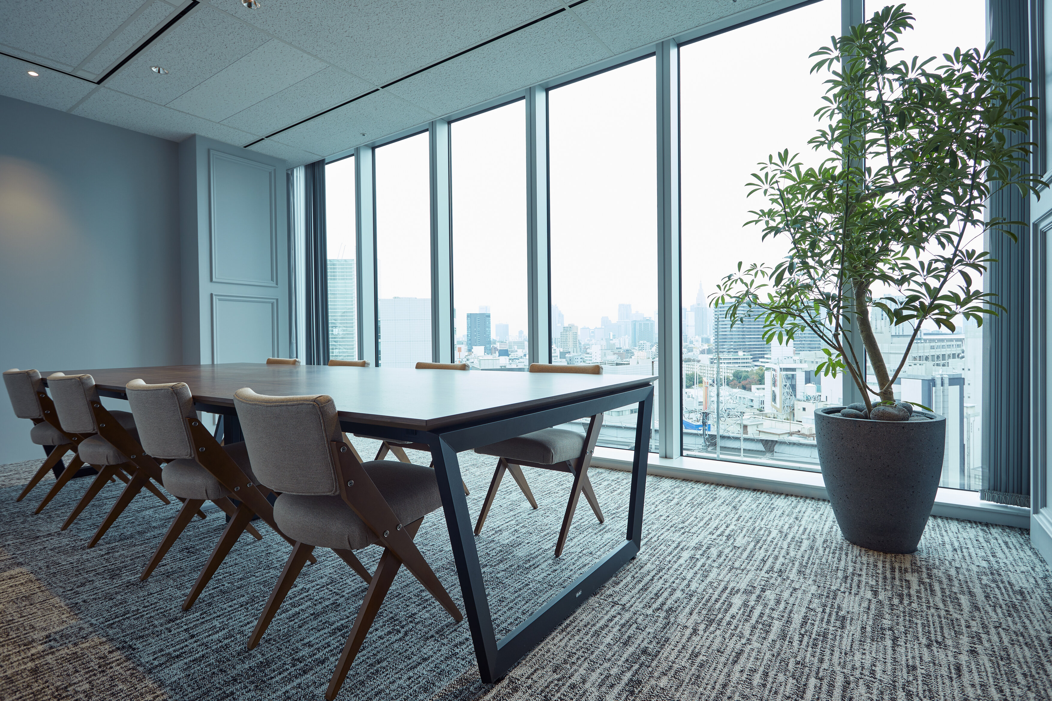 大開口で採光抜群の8人用会議室と、VIP気分を感じられる応接室のような6人会議室を用途に合わせて選べます。![]()