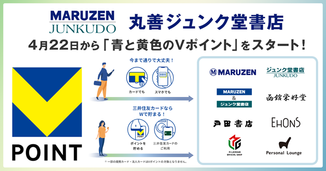 4月22日から丸善ジュンク堂書店で「青と黄色のVポイント」を開始