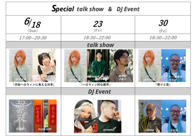 展示期間中は、作品への理解を深め、またコンピューターなどの新しいテクノロジーを取り入れた1990年頃から生まれた表現である「メディアアート」をより身近に感じてもらうために、パーティーイベントを3回開催予定です。イベントでは、菅野氏とゲストによるトークショーや、渋谷で活躍するDJによる音楽とアートの融合を体験いただけます。