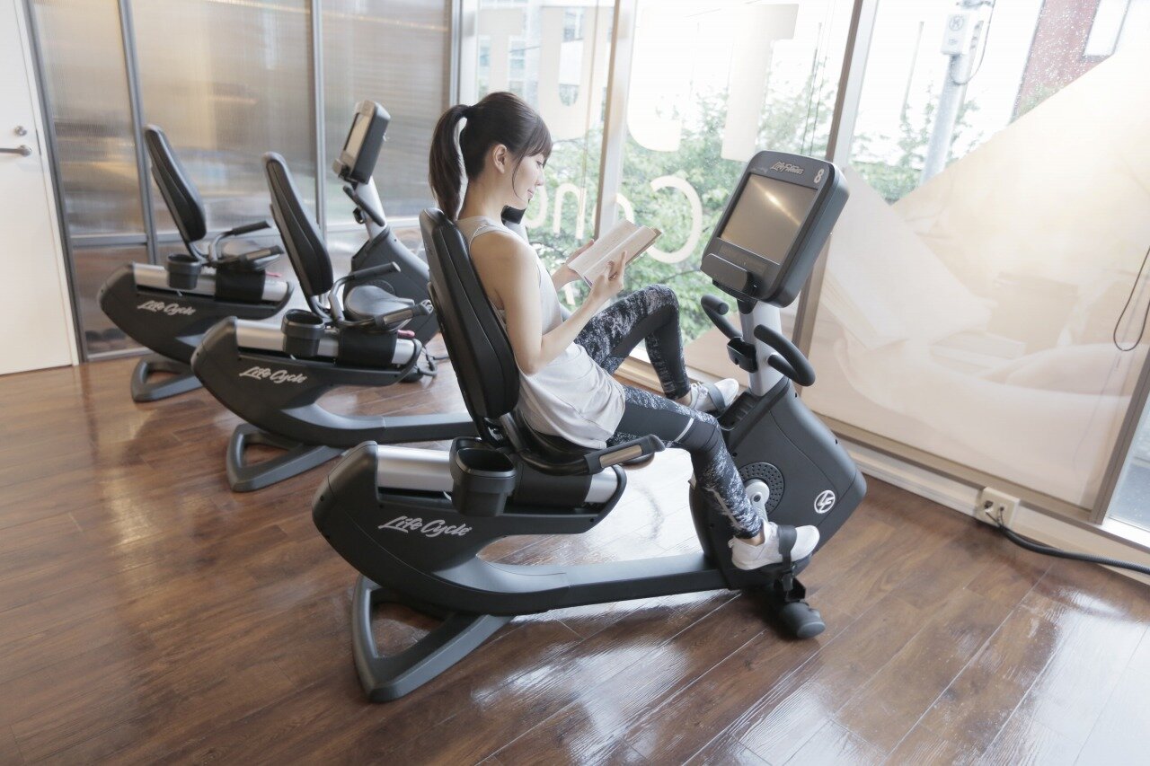 書店であるTSUTAYAならではの本に囲まれた空間づくりを行っています。代官山 蔦屋書店のコンシェルジュが厳選した約300冊の書籍は運動の合間はもちろん、運動しながらでも自由にお読みいただけます。本を通した新しい発見と出会いをご提案いたします。毎月新しい本を20~30冊程度ご提案していく予定です。