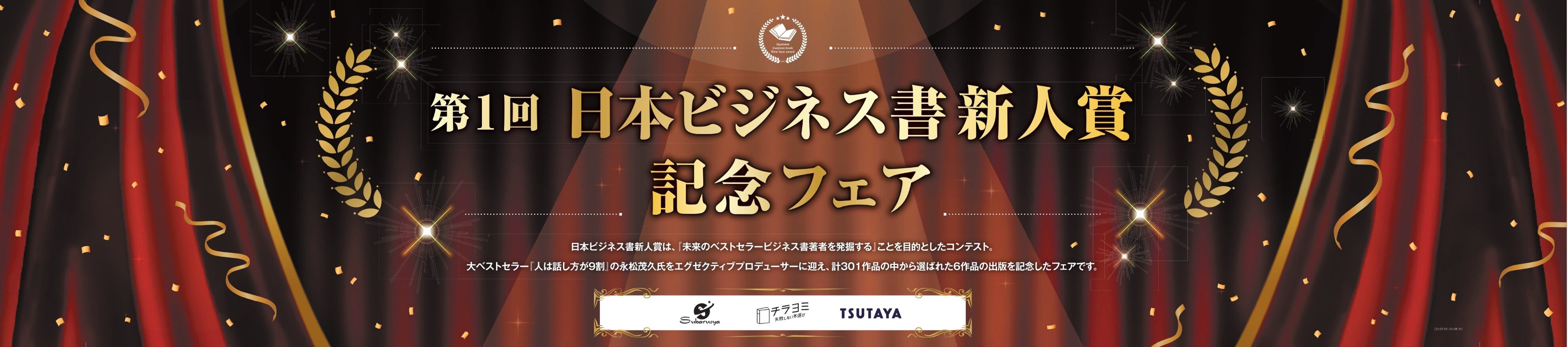 この発売を記念して、7月10日(月)より『第1回 日本ビジネス書 新人賞 記念フェア』を、全国約370店舗のTSUTAYA/蔦屋書店(一部店舗を除く)の書籍売り場にてコーナー展開をするとともに、全国の書店および電子書籍にて展開してまいります。