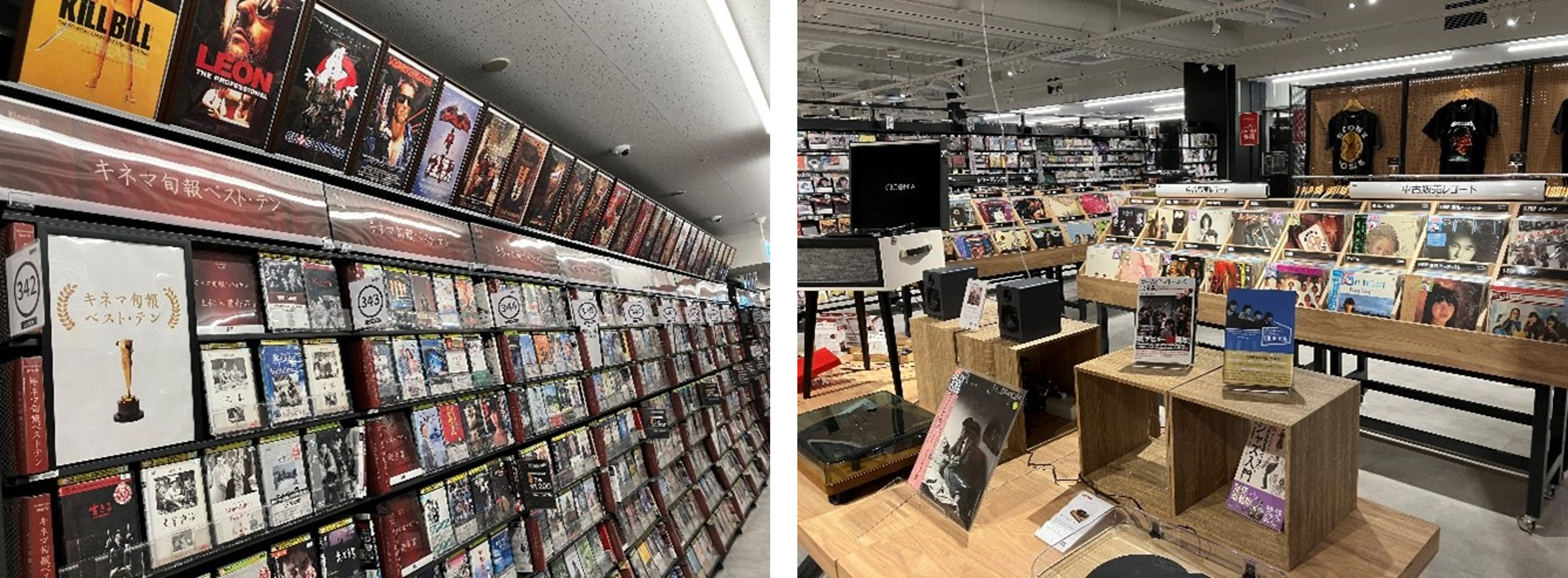世界の映画賞を受賞した名作や、名監督の作品など、動画配信では提供されていない往年の名作を楽しむことができる映像レンタルコーナーを展開いたします。過去の名作映画のポスターなどが映し出される売場で、映画を見たくなるワクワク感を演出いたします。