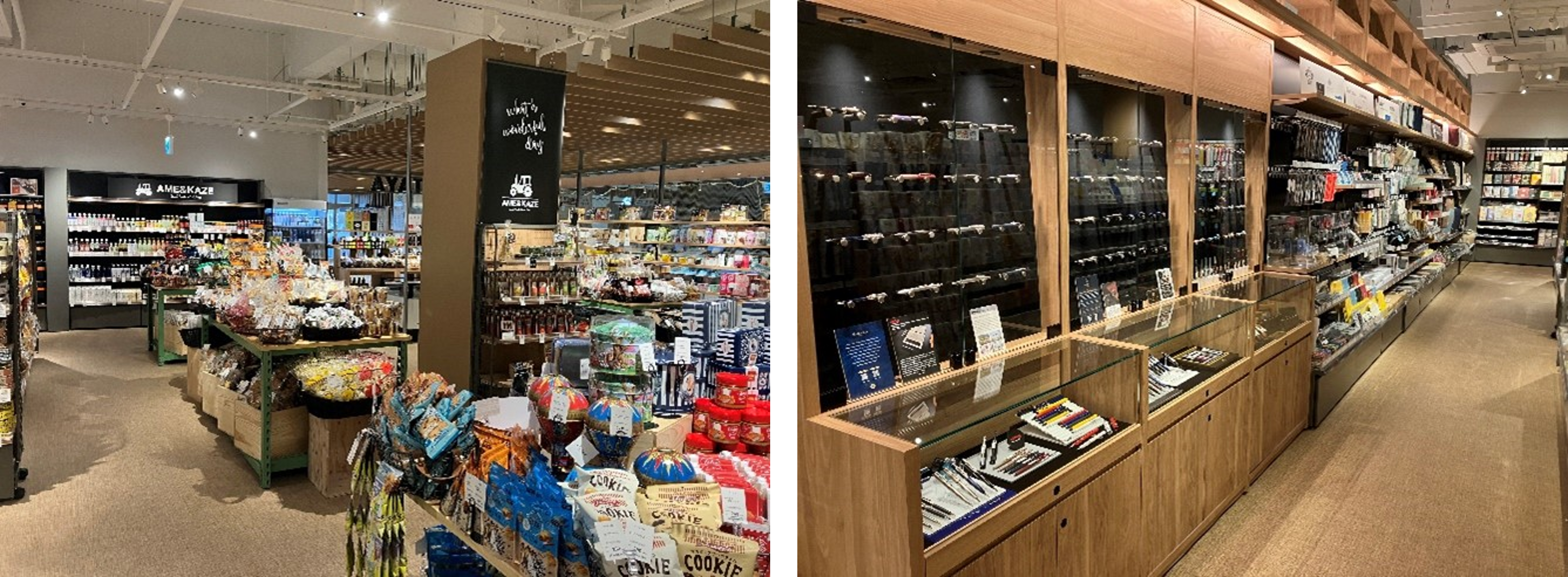 文具雑貨売場では、こだわりの食雑貨や酒類やおつまみなど、日常の食卓に彩りを与える商品を展開いたします。また、高級筆記具や小物、コスメなどギフトにも使える雑貨類も幅広く提案いたします。