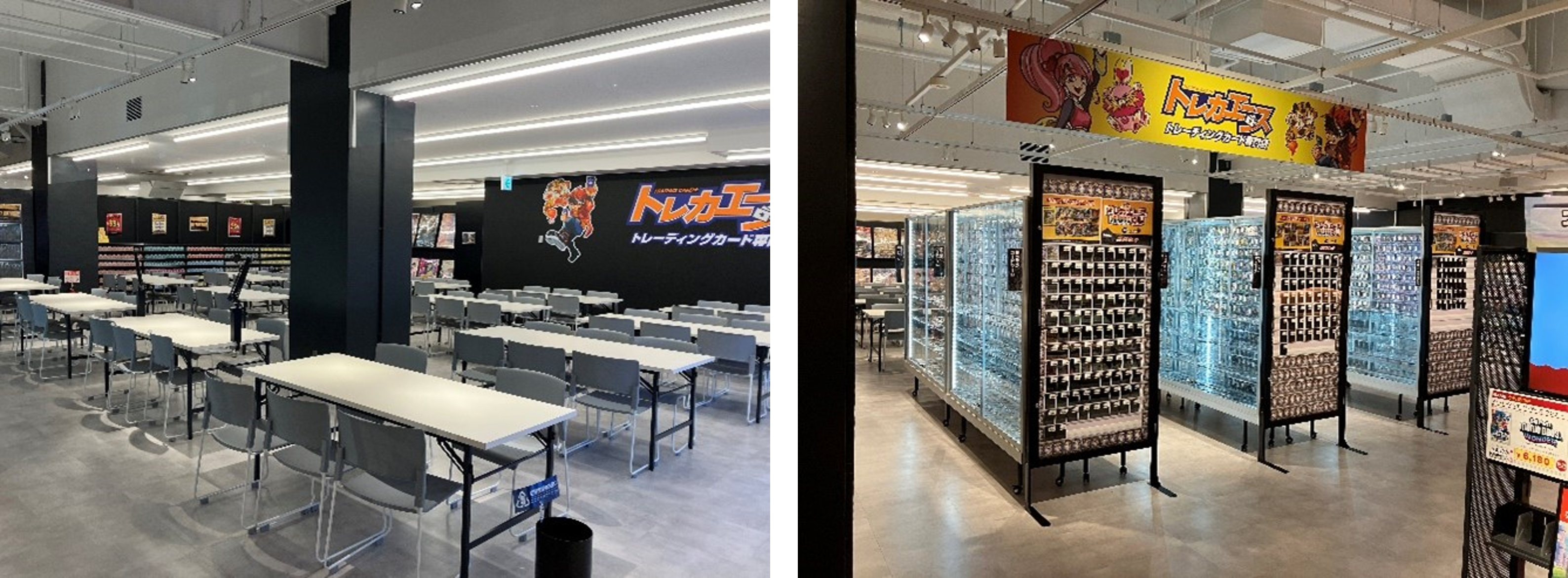 座席数約100席を備えたトレカの対戦スペースを備えています。大会やイベントなどを実施し、スタッフや地域にお住まいのプレイヤーと交流ができ、あらたなコミュニティの創出に繋げます。