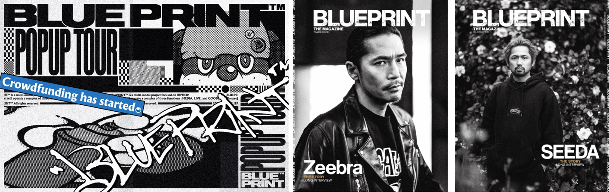 「MEDIA」領域では、創刊号としてZeebra / SEEDAをW表紙に迎えた「BLUEPRINT THE MAGAZINE vol.0」を2024年5月に発売。大切にしていることは、HIPHOPシーンに関わる方達の「青写真」をしっかりと歴史の一ページとして残していくこと。紙媒体としての完成度にこだわり、10年後にも残るものにしていきたいと思っています。