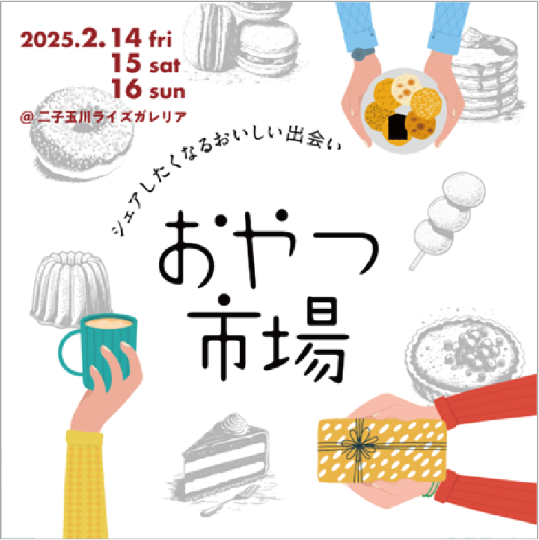 2025年2月14日(金)~16日(日)の3日間、二子玉川ライズ イベント広場「ガレリア」にて「おやつ市場」を初開催いたします。