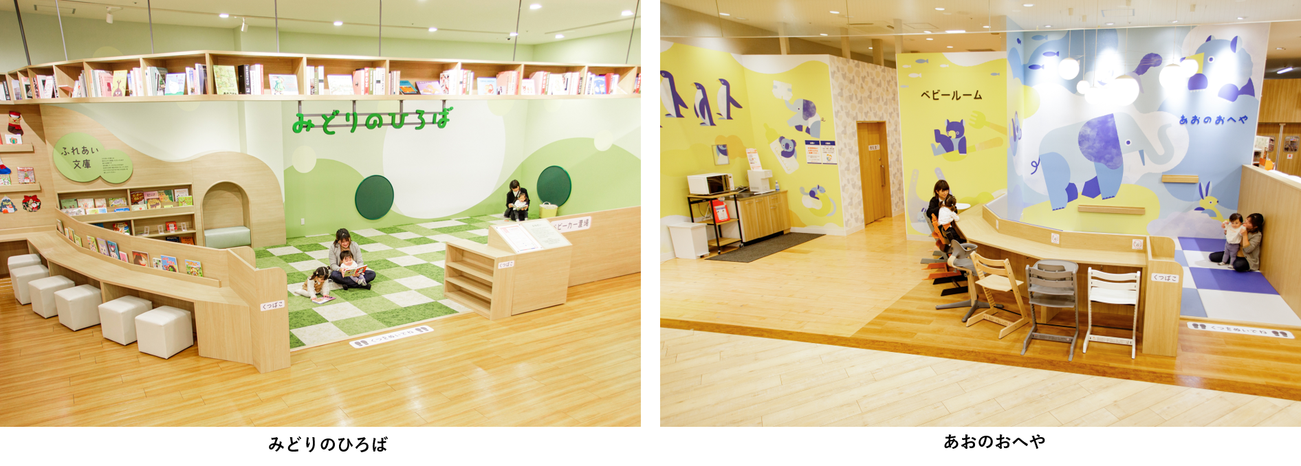 「みどりのひろば」では、乳幼児期に触れてほしい絵本を多数展開し、開放的なスペースで自由に読み聞かせができるほか、「日本一の読書のまち」を宣言する三郷市が取り組む「ふれあい文庫」(※)も設置しています。さらに、地域情報の掲出や、お客様参加型のイベントを多数開催することにより、赤ちゃんがいる暮らしを育む地域の方々のコミュニティスポットとなることを目指します。