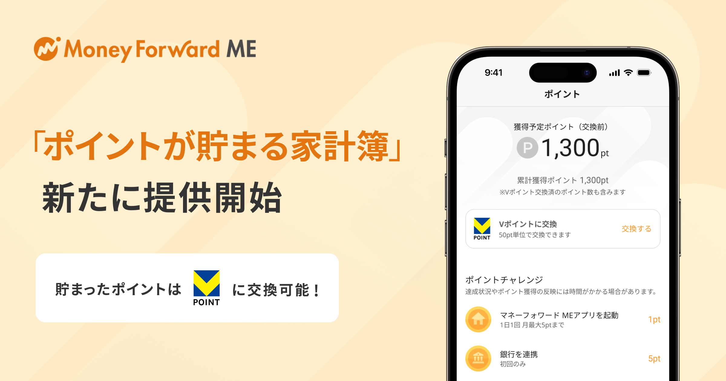 マネーフォワードホーム株式会社(本社:東京都港区、代表取締役社長:辻 庸介、以下「マネーフォワードホーム」)は、2024年12月2日(月)より、『マネーフォワード ME』において、家計管理や資産管理を通じてポイントが貯まる新機能を提供します※1。貯まったポイントは、CCCMKホールディングス株式会社(本社:東京都渋谷区、代表取締役社長 兼 CEO:髙橋 誉則、以下「CCCMKHD」)と三井住友カード株式会社(本社:東京都江東区、代表取締役社長:大西 幸彦、以下「三井住友カード」)が提供するVポイント※2に交換・利用できるようになります。